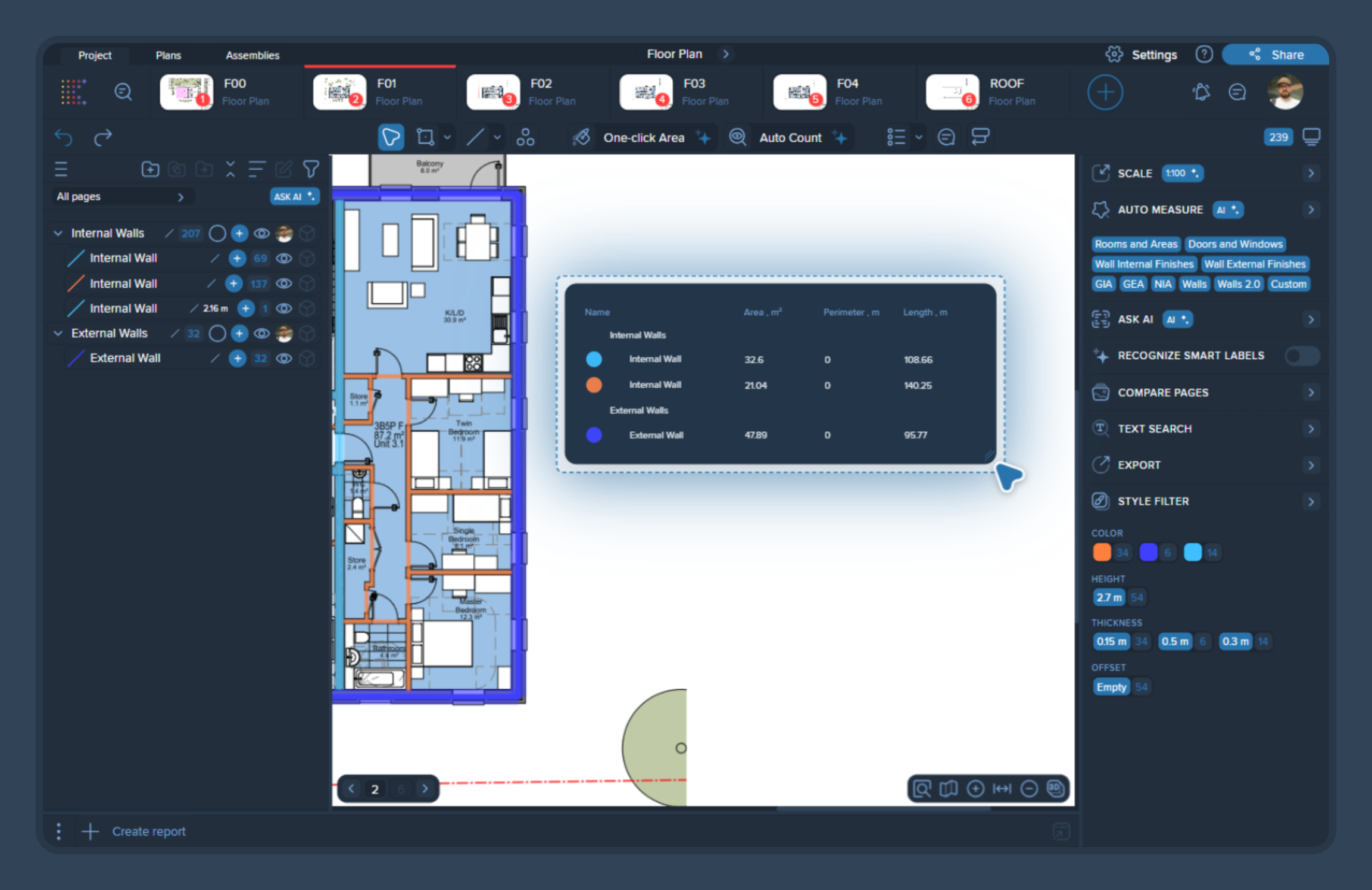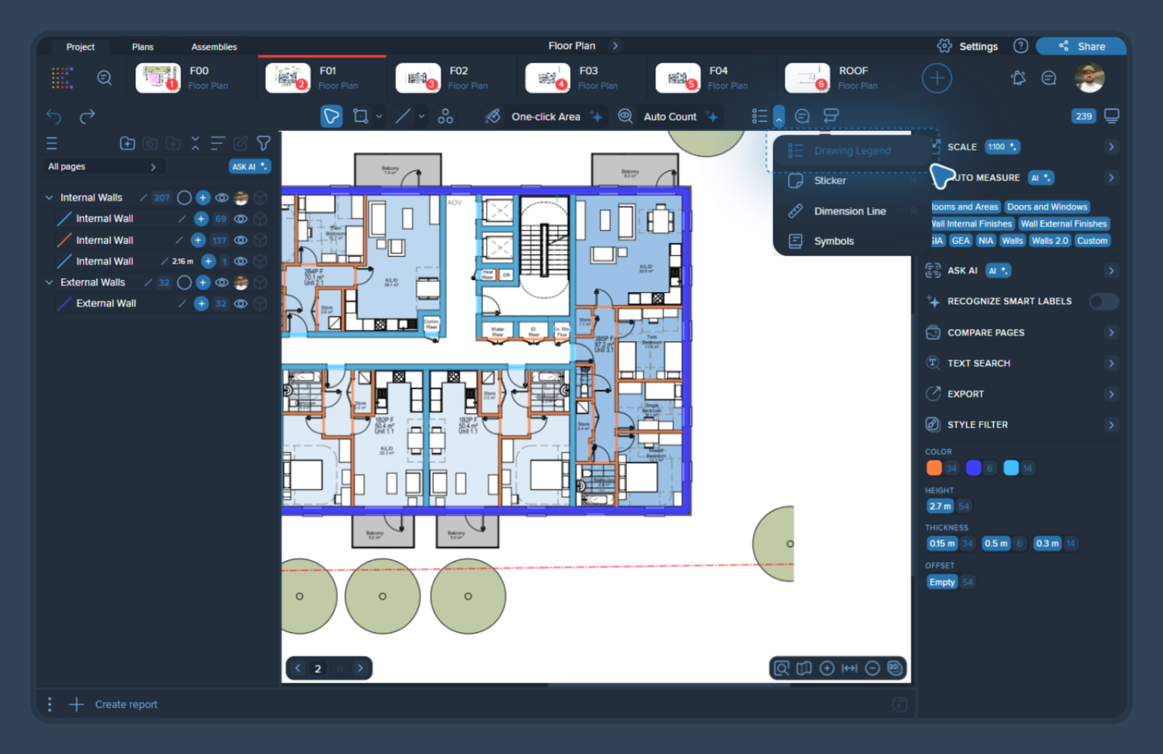 but the exported PDF legend will include only the measurements currently visible on the drawing, so the output stays consistent and uncluttered.