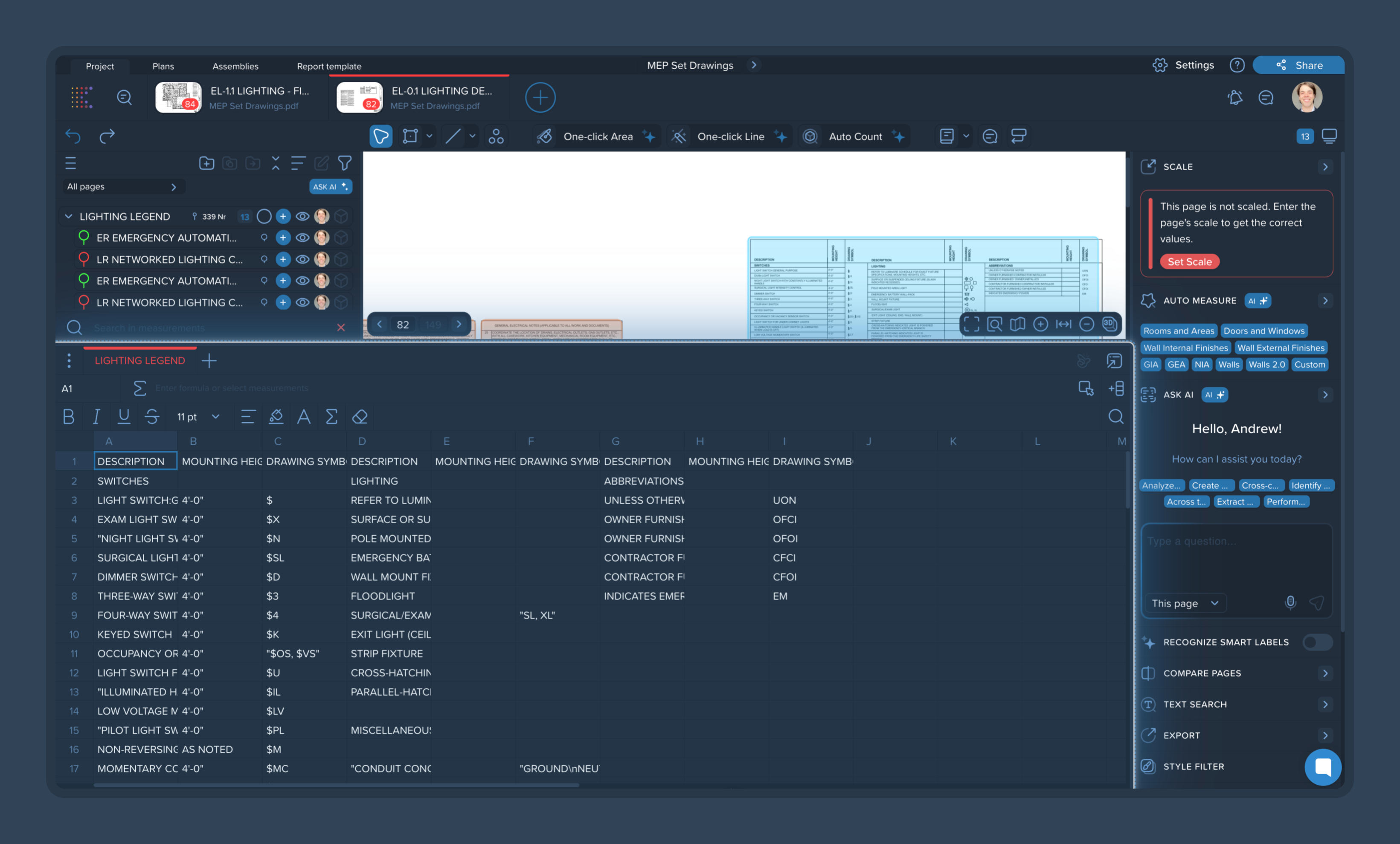 The system will automatically jump to the exact location of that legend or schedule, even if it's on a different page. Click the label again in the pop-up to return to your original view on the floor plan.