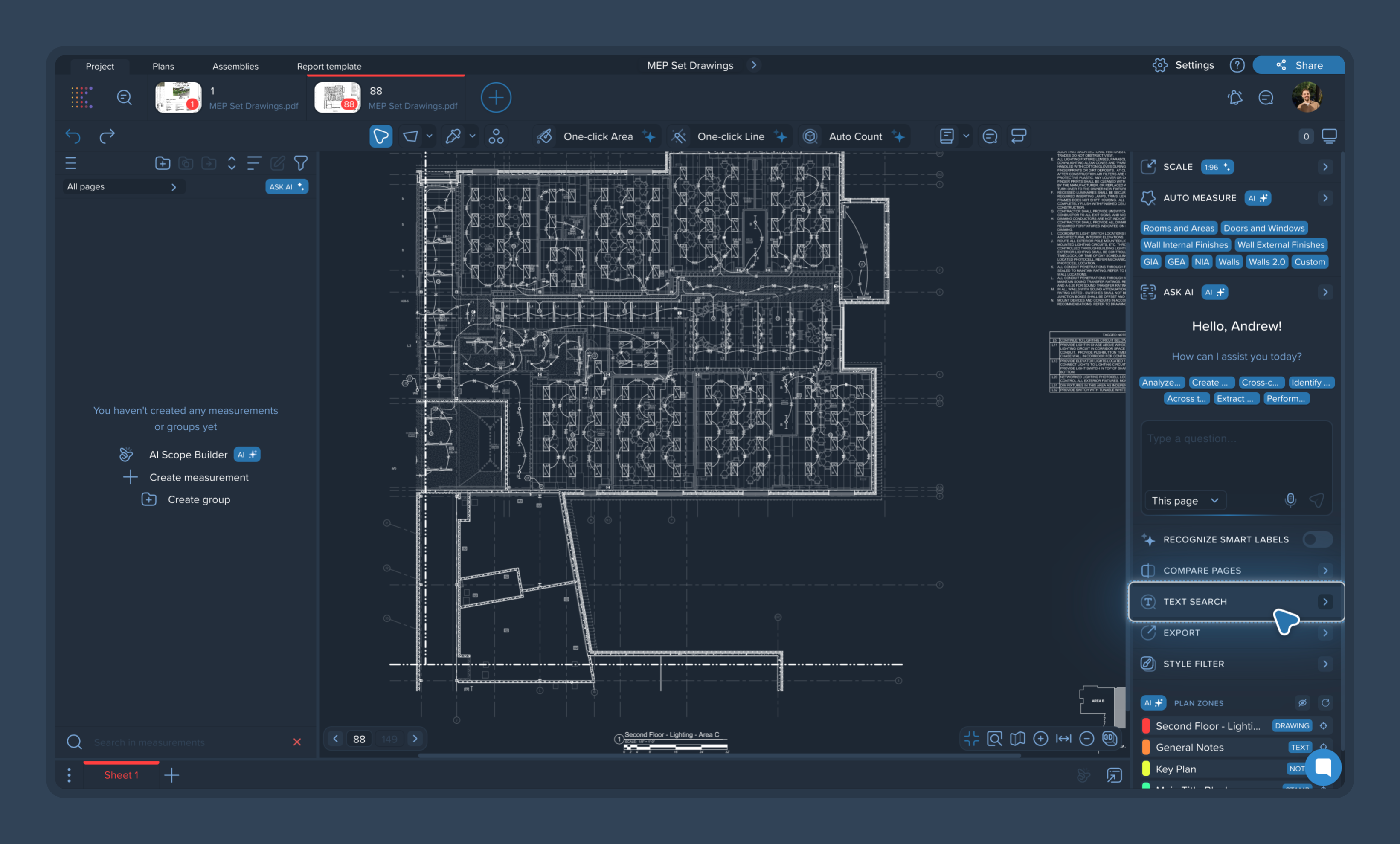 With the latest update, you can now combine text search with AI-recognized Plan Zones, enabling you to pinpoint exactly where the system should look for your text and easily filter out irrelevant results.